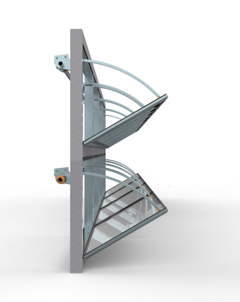 Sistema mecánico robusto diseñado para automatizar la apertura y cierre de cortinas laterales en instalaciones productivas, permitiendo un funcionamiento progresivo, silencioso y seguro. El diseño de cremallera curva reduce el esfuerzo mecánico y evita desalineaciones, asegurando un control constante del flujo de aire en configuraciones de ventilación natural, mixta o túnel.