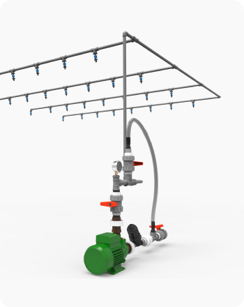 Está compuesto por una unidad de presurización, una red de cañerías y boquillas nebulizadoras que generan una niebla fina para reducir rápidamente la temperatura ambiente. Su funcionamiento se controla de forma automática mediante sensores de temperatura y temporizadores, garantizando condiciones ambientales óptimas para cada tipo de producción.